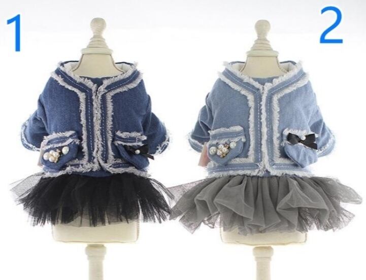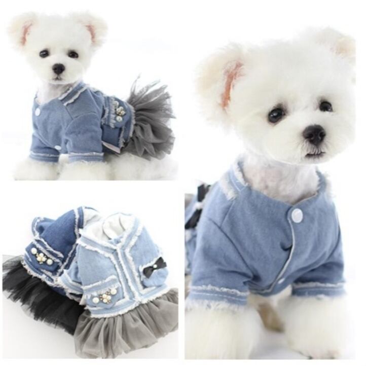 【S】即納あり★オシャレなデニムジャケット風ワンピース♡ 犬用 春服夏服秋服冬服 ペット リボン 犬服 犬グッズ ヘアバンド XS S M L XL 撮影用 撮影会 誕生日 ギフト 可愛い