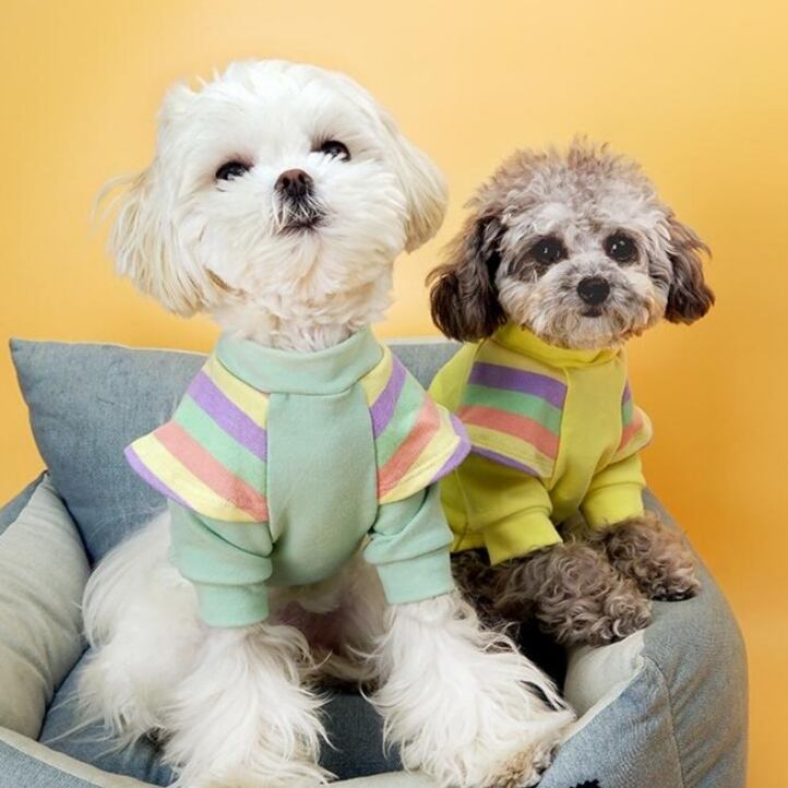 【S】即納あり★オシャレなパステルレインボーカラートップス♡ 犬用 春服夏服秋服冬服 ペット リボン 犬服 犬グッズ ヘアバンド S M 撮影用 撮影会 誕生日 ギフト 可愛い かぶりもの