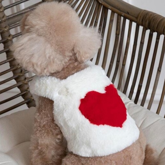 【S】即納あり★オシャレなもこもこハートトップス♡ 犬用 春服夏服秋服冬服 ペット リボン 犬服 犬グッズ ヘアバンド S M 撮影用 撮影会 誕生日 ギフト 可愛い かぶりもの